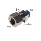 Advantages: •extremely compact form, •M 7 thread available, •M 3, M 5 and M7 threads have a captive O-ring fitted, that helps prevent tearing the thread and seals reliably even after multiple assemblies