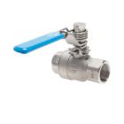 Materials: Housing: 1.4408, ball: 1.4408, seal: PTFE, handle and spring: 1.4301