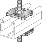 MQZ-L-F NEW MQZ-L-F NEW Surface finish: Hot-dip galvanized, 56 µm - ASTM A153 Material composition: S235JR - DIN EN 10025 Features & Applications Features Matching items in program Matches the MQ channel system perfectly Suitable for MQ installation channels and brackets Applications For wall, ceiling or floor attachment of angles, connectors or brackets For wing nut or spring nut applications with angles, connectors and brackets For fastening metric threaded parts to MQ channel