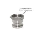 Materials: Body: stainless steel (1.4408), seal: NBR, handle: stainless steel, ring: stainless steel (female thread is equipped with PTFE flat seals)